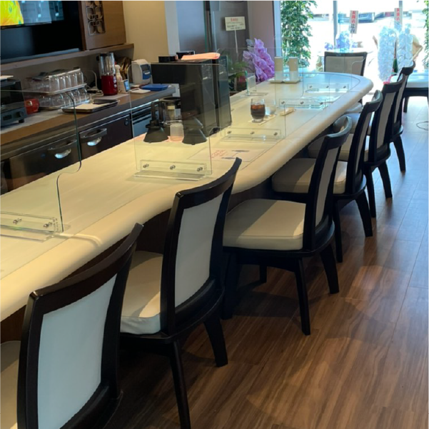 定期的な換気、隣客との距離確保、アクリル板の設置、従業員の検温・手洗い・うがいの徹底等感染症対策もしっかり取り組んでいます。